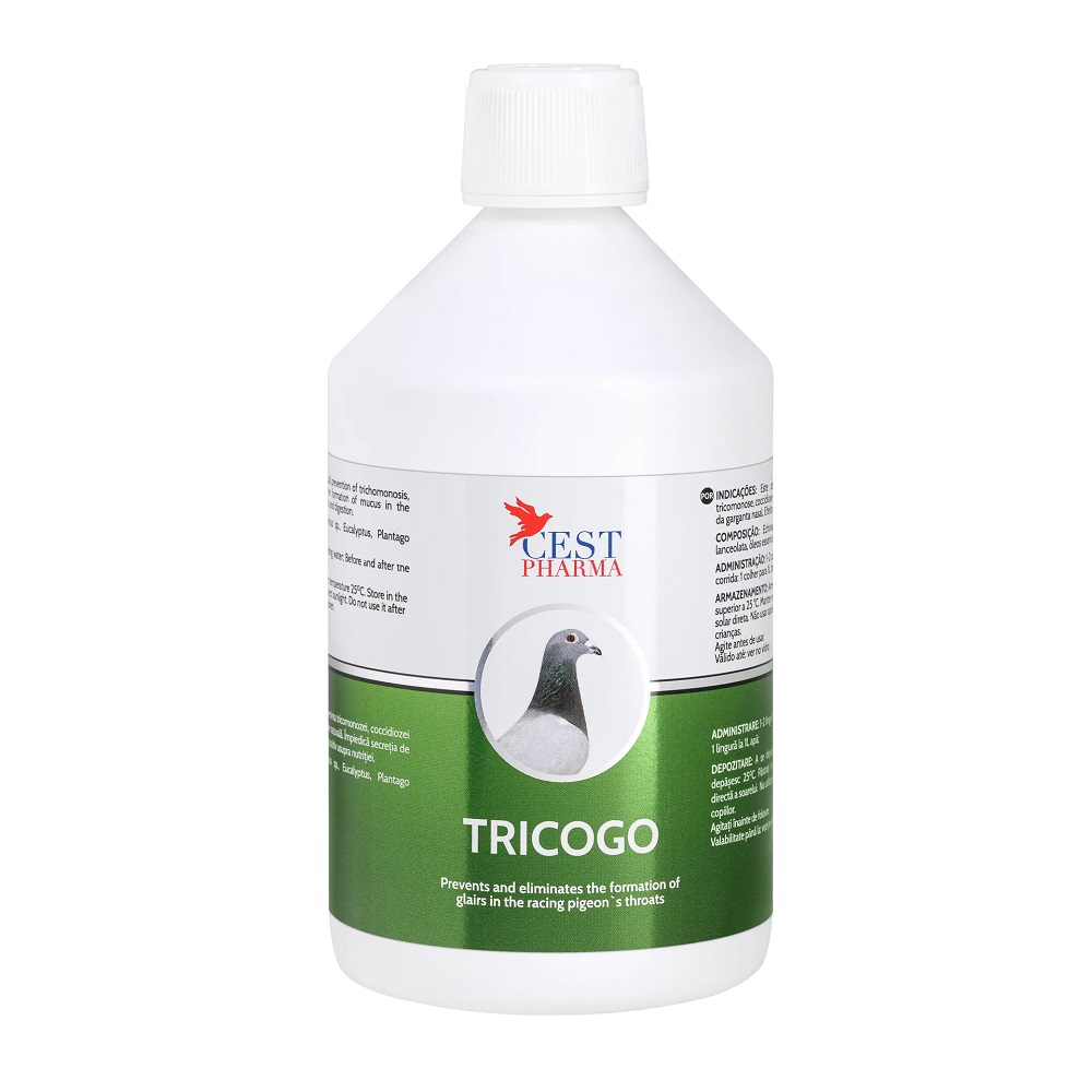 Το Tricogo είναι ένα υγρό ευβιοτικό, ένας συνδυασμός ενεργών συστατικών για την υποστήριξη, σε βέλτιστες παραμέτρους, της ευεργετικής εντερικής χλωρίδας και της υγείας των πτηνών. Είναι χρήσιμο για τη φυσική πρόληψη μεταδοτικών ασθενειών (τριχομονάδες, κοκκιδίωση, μύκητες κ.λπ.) και λοιμώξεων του αναπνευστικού. Βοηθά στη μείωση της έκκρισης βλέννας στους αεραγωγούς, η οποία θα διευκολύνει την αναπνοή, αυξάνοντας έτσι την πρόσληψη οξυγόνου στους ιστούς του πτηνού. Έχει αντιφλεγμονώδη δράση και καθυστερεί την εμφάνιση της κόπωσης.