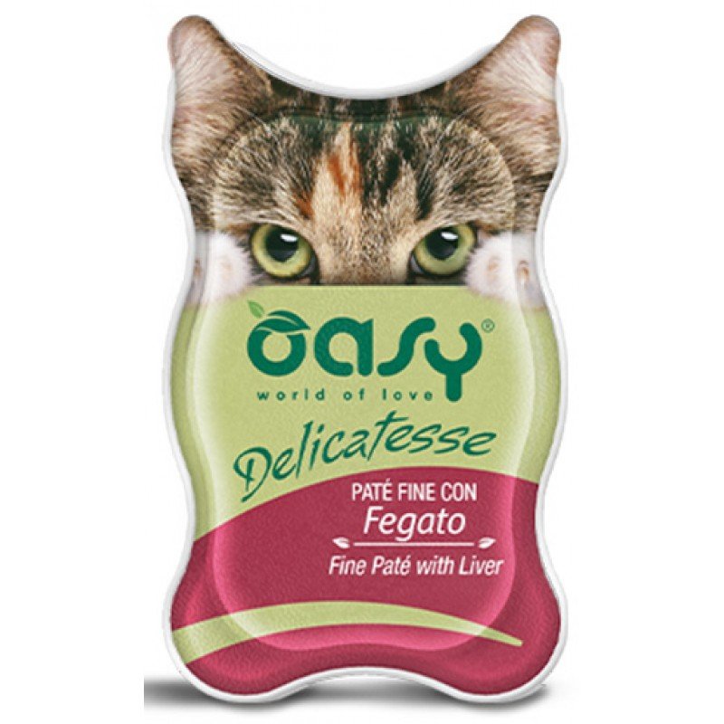 Oasy Delicatesse pate Liver (συκώτι πατέ) 85gr.Εκλεκτό πατέ με συκώτι. Πλήρης τροφή για γάτες.Εάν η γάτα σας λατρεύει το μαλακό και εκλεπτυσμένο υγρό φαγητό, τότε το Εκλεκτό Πατέ με συκώτι είναι η επιλογή σας! Φτιαγμένο με άφθονο κρέας και φυσικά συστατικά και με λεπτή υφή, για να προσφέρει στον φίλο σας ένα θρεπτικό και νόστιμο γεύμα κάθε μέρα.